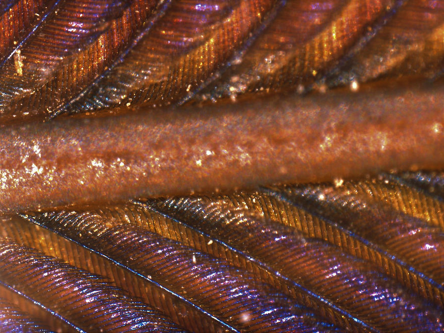 There are currently many examples for how different iridescent feather colors are produced, yet there few which detail how tiny differences within the feathers can result in dramatic color shifts. I am applying my experience with electron microscopy and chemical techniques to detail key differences between iridescent feathers.